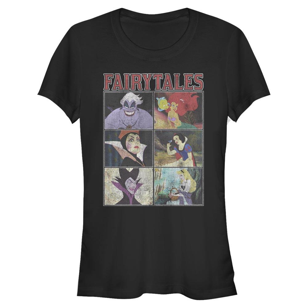 Das T-Shirt zeigt Arielle, Schneewittchen und Dornröschen mit ihren jeweiligen Villains Ursula, die böse Königin und Malefiz.