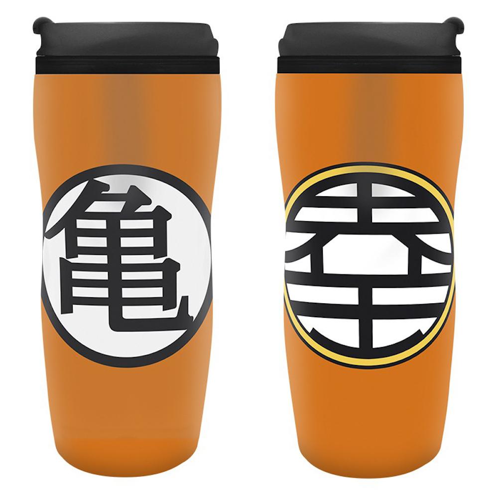 Der Thermobecher zeigt den japanischen Schriftzeichen aus Dragon Ball.
