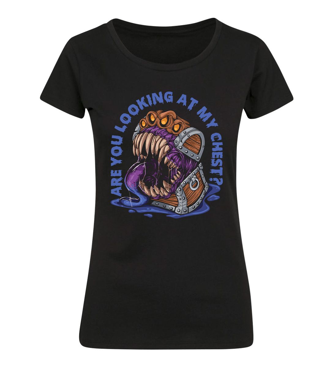 Das Shirt zeigt einen Mimik mit dem Spruch "Are You Looking At My Chest?".