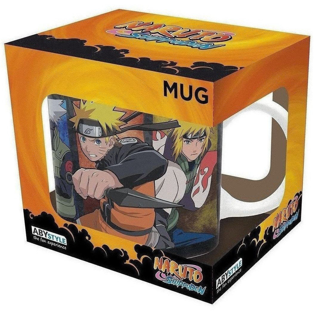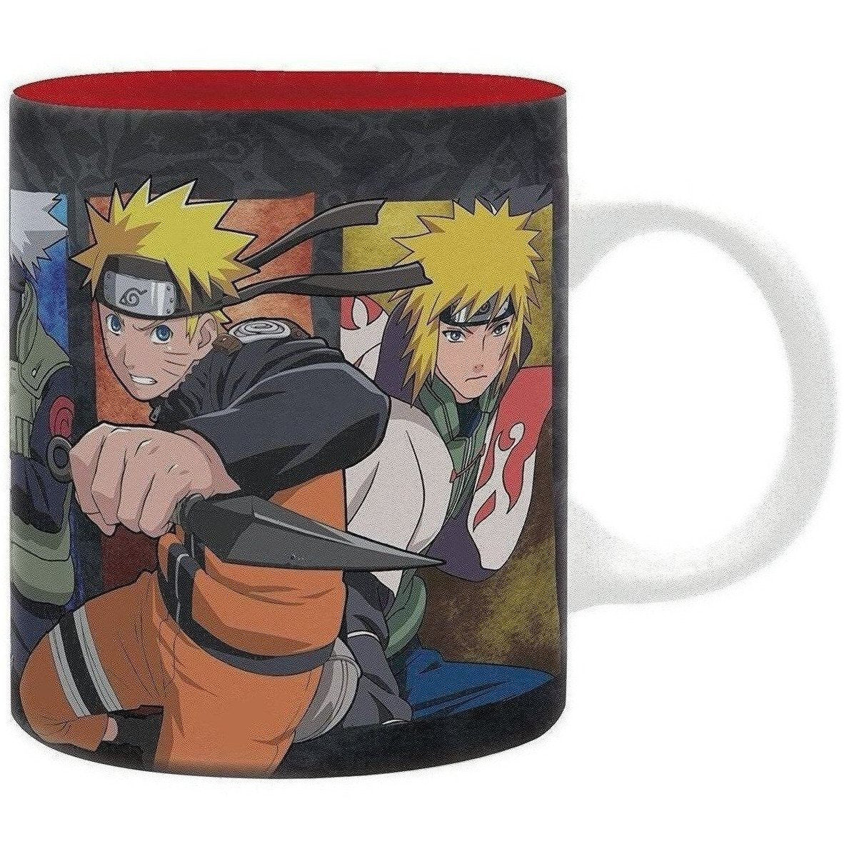 Die Tasse zeigt Minato, Naruto, Sasuke, Itachi, Kakashi und Sakura.