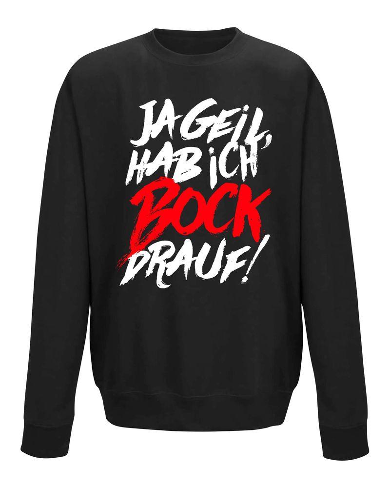 Der schwarze Hoodie zeigt den Spruch Ja Geil, Hab Ich Bock Drauf!