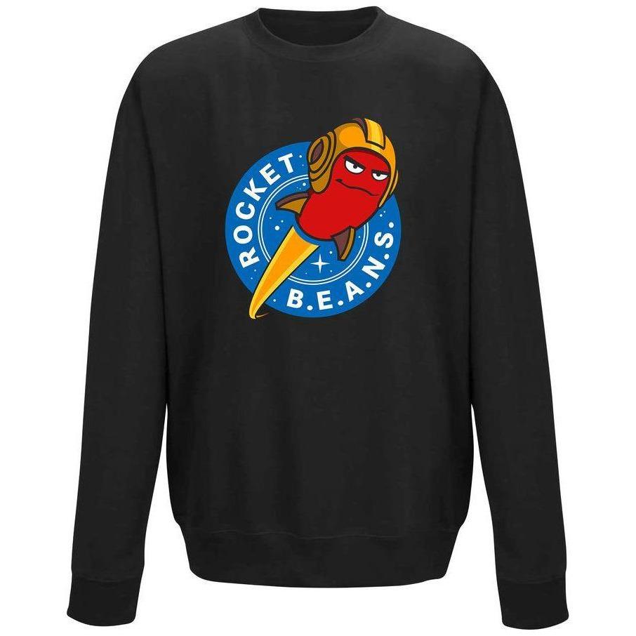 Das Sweatshirt zeigt das Logo der Rocket Beans.