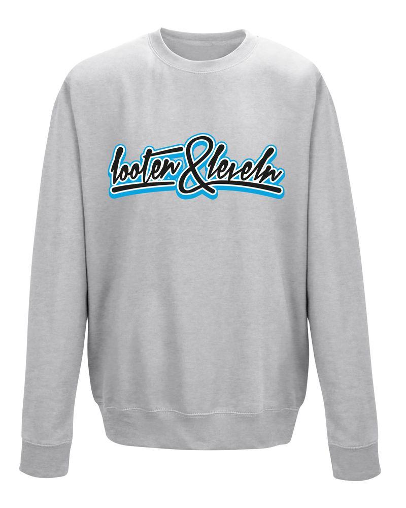 Das Sweatshirt zeigt die Worte looten & leveln.