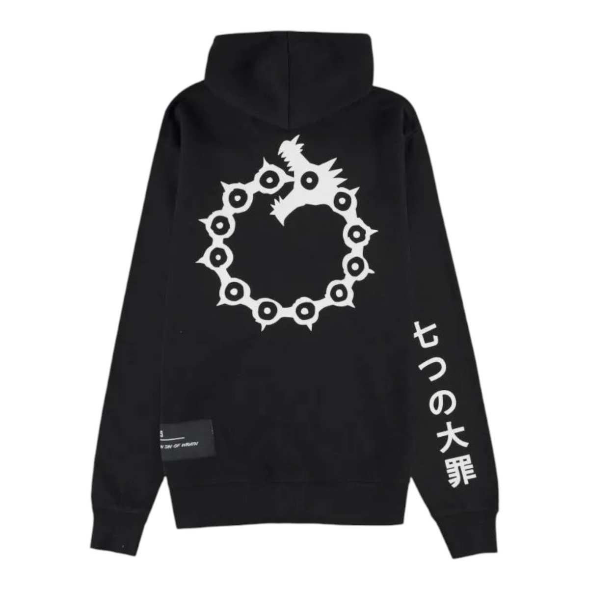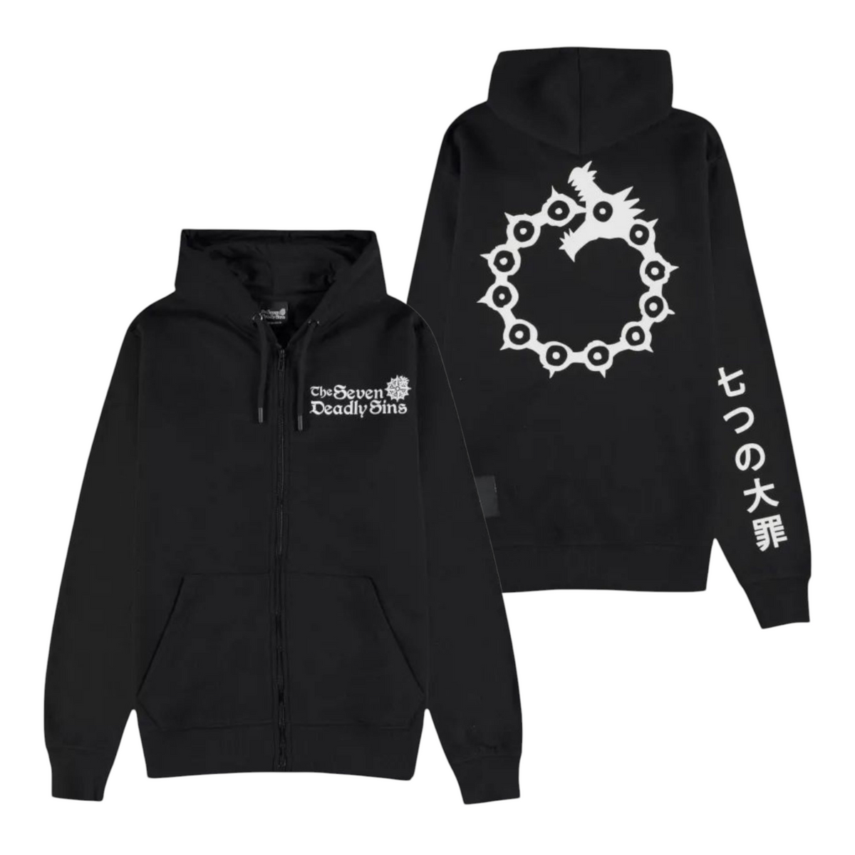 Der Zipper zeigt das Logo zu Seven Deadly Sins auf der Front und Melodias Symbol auf dem Rücken.