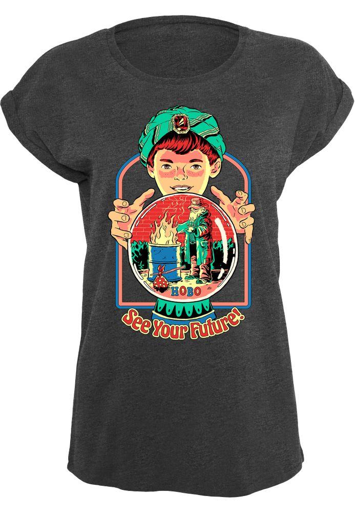 Das Girlshirt zeigt einen Jungen, der in einer Kristallkugel einen Mann vor einer Feuertonne stehen sieht. Unten steht der Text "See Your Future".