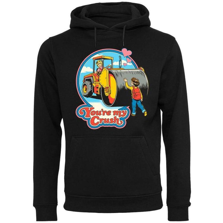 Der Sweater zeigt ein Mädchen, das auf einer Dampfwalze sitzt. Vor ihr steht ein Junge, der ihr zuwinkt.