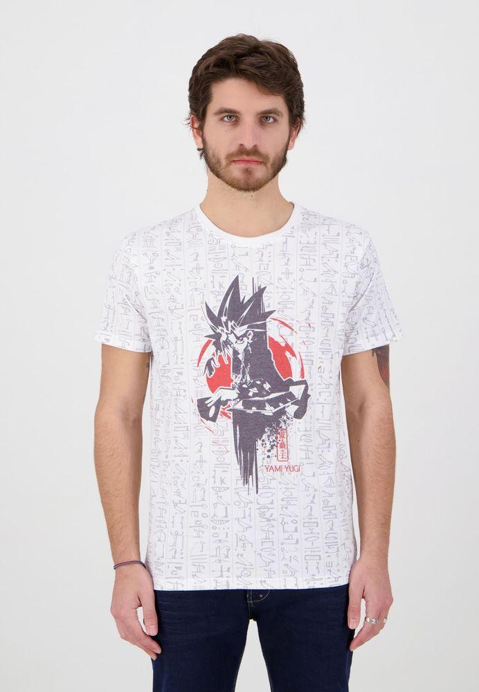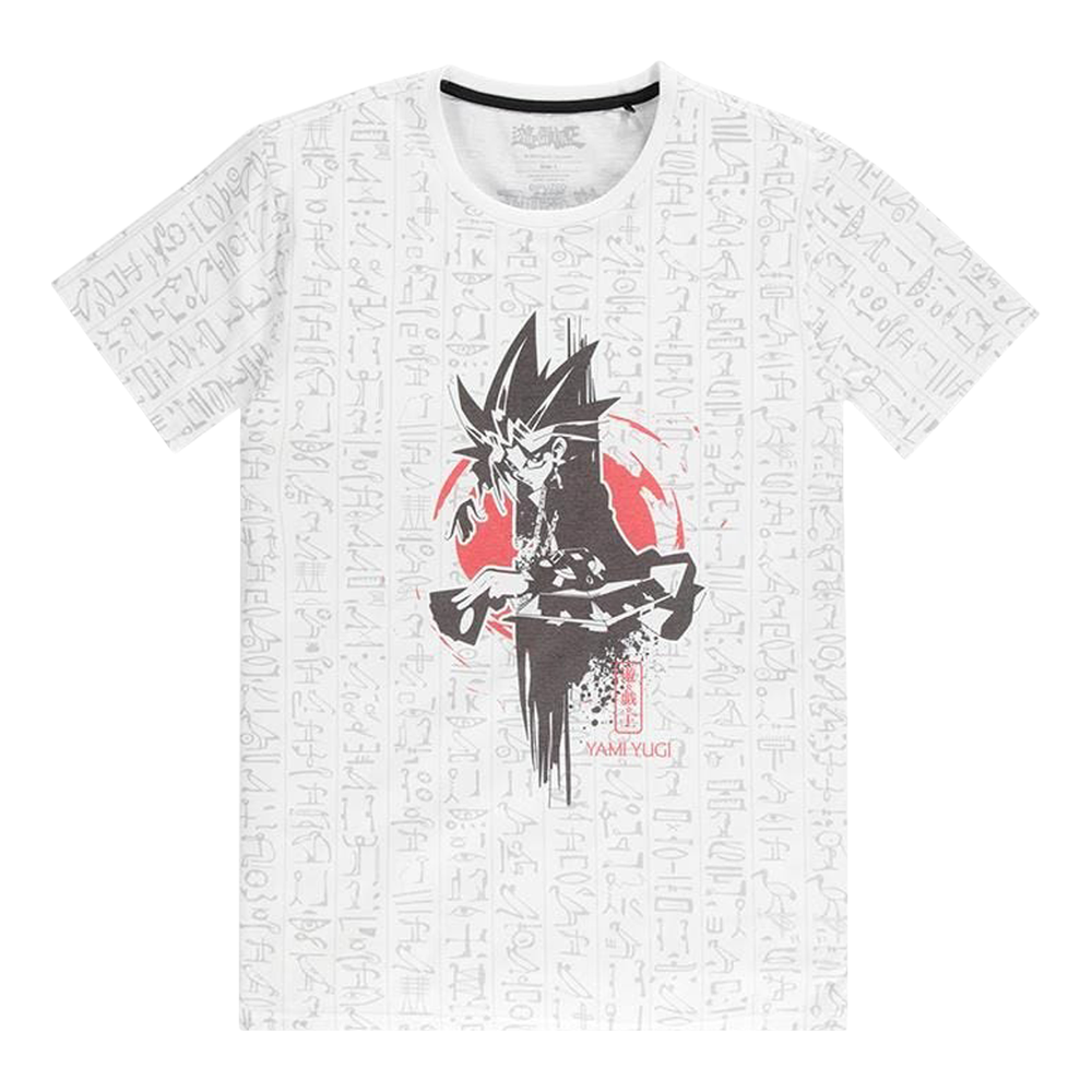 Das T-Shirt zeigt Yami Yugi und ägyptische Zeichen.
