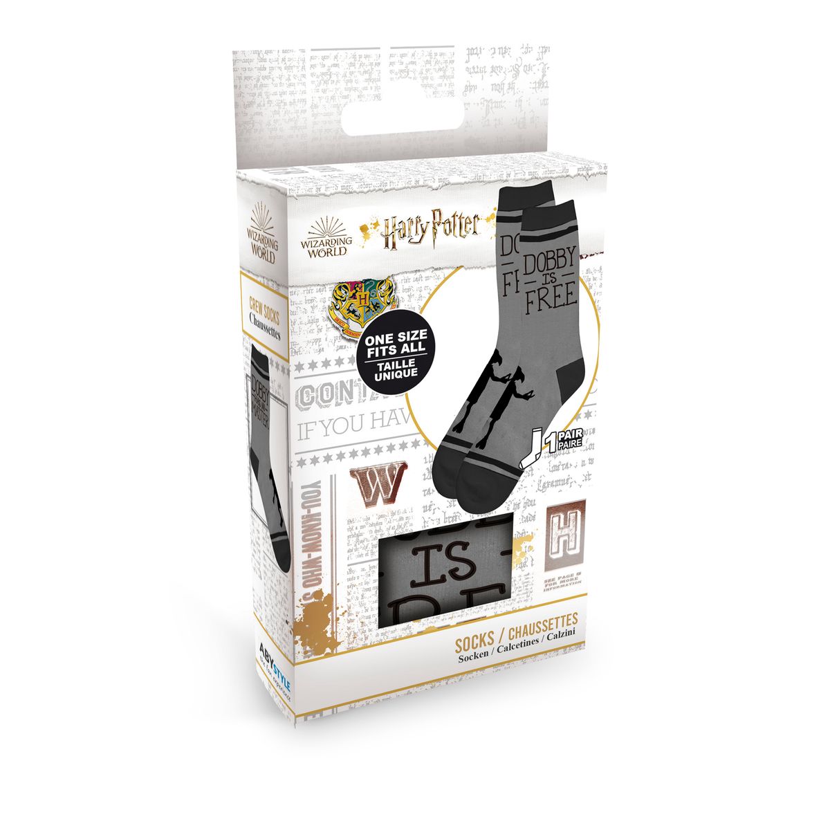 The socks feature Dobby and the sayings "Dobby Is Free" and "Dobby Has No Master".