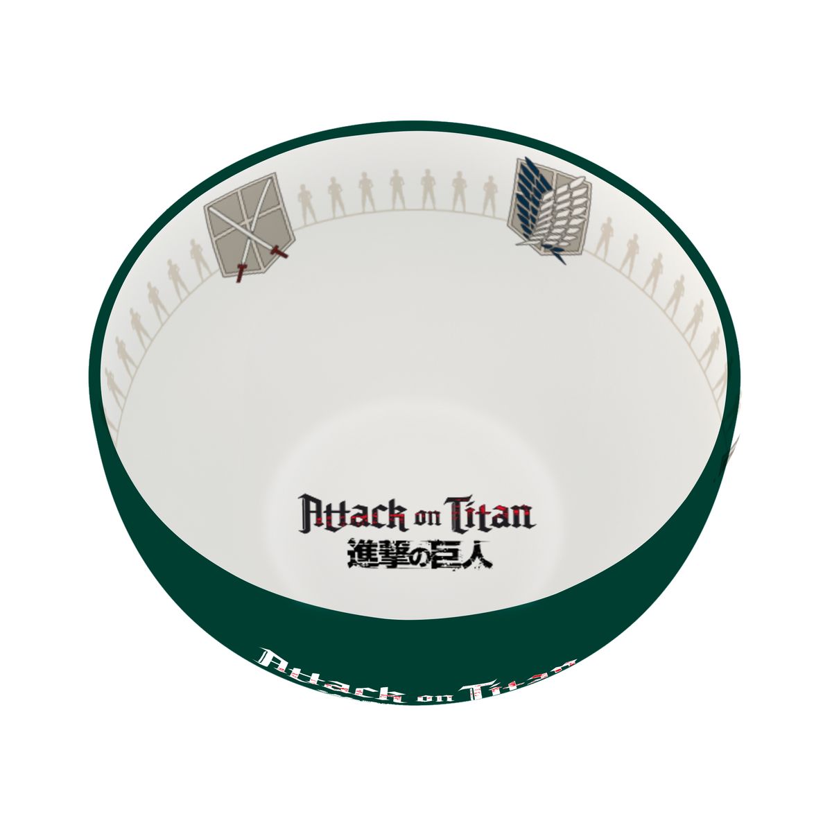 Die große Schale zeigt das Logo zu Attack on Titan sowie die vier Divisions-Symbole.
