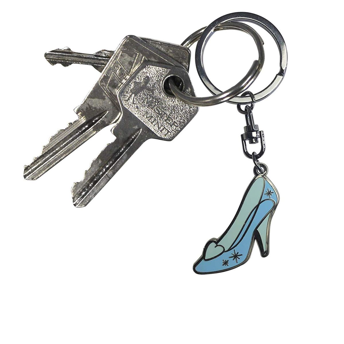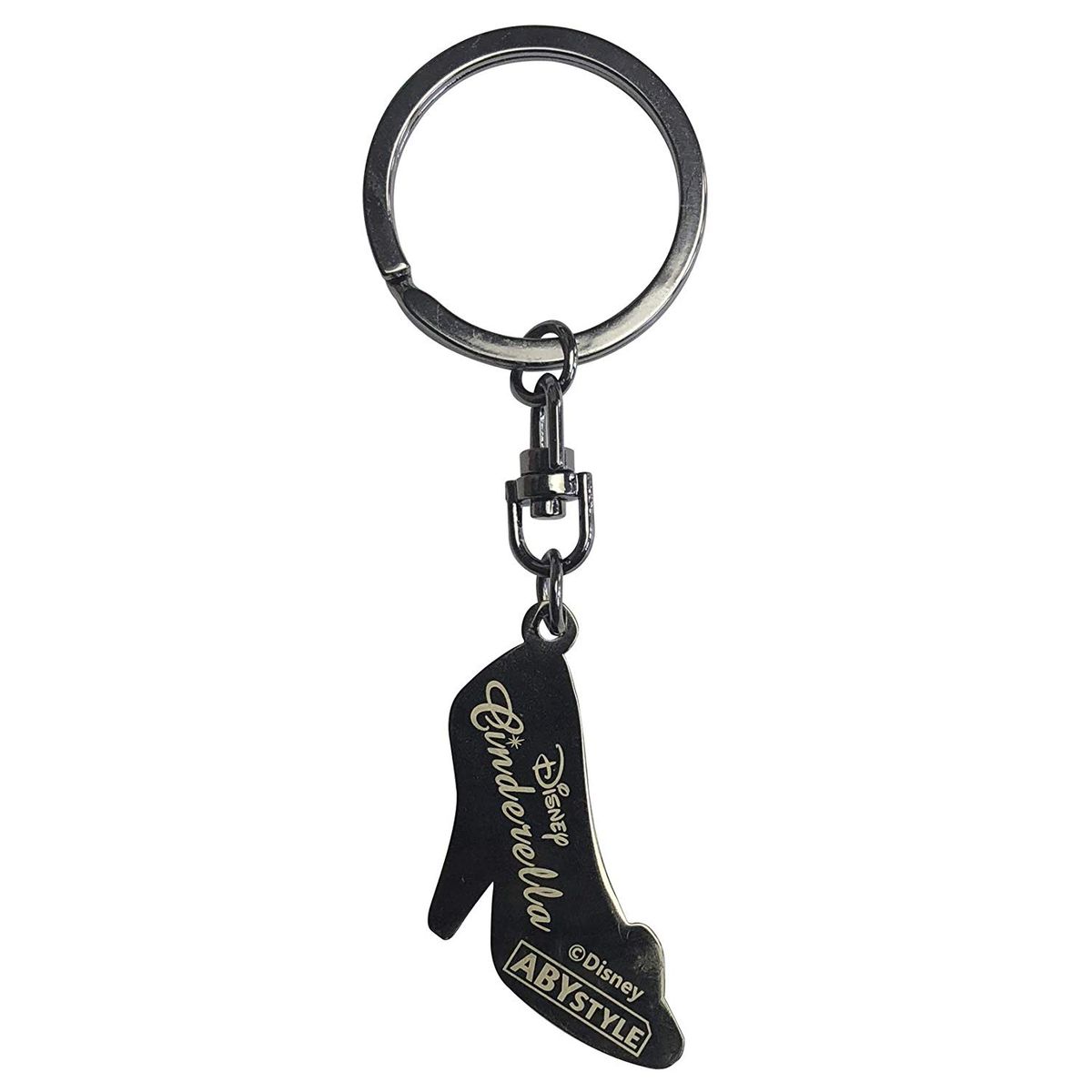 Der Schlüsselanhänger zeigt detailliert den gläsernen, hochhackigen Schuh. Hinten steht Cinderella geschrieben