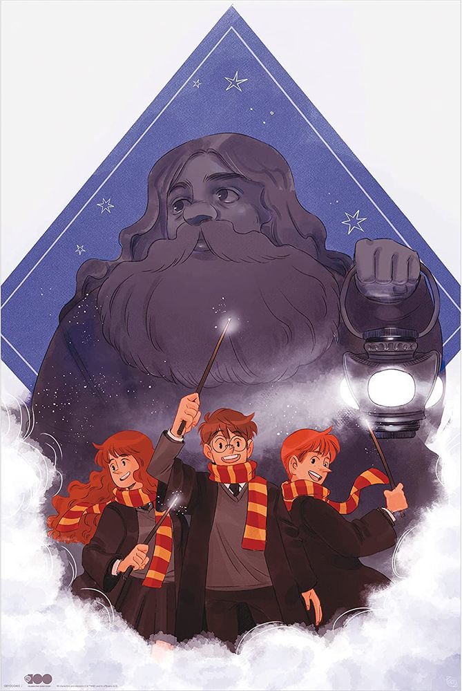 Das hochwertige Poster zeigt Hagrid mit Hermine, Harry und Ron im Vordergrund.