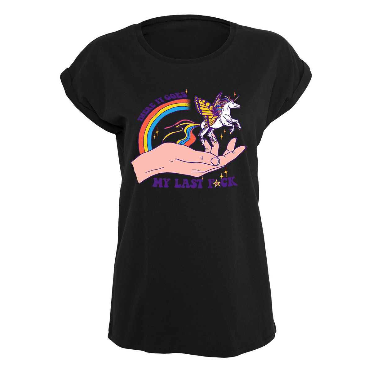 Das Shirt zeigt ein Einhorn mit dem Spruch "There it goes, my last F*ck".