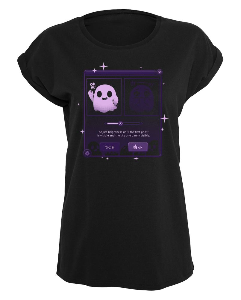 Das Shirt zeigt einen freundlichen Geist und einen schüchternen Geist, der nach Höherstellen der Helligkeit sichtbar werden würde.