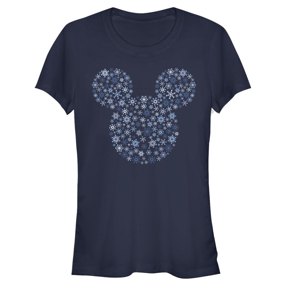 Das T-Shirt zeigt einen Mickey Kopf, der aus Schneeflocken besteht.