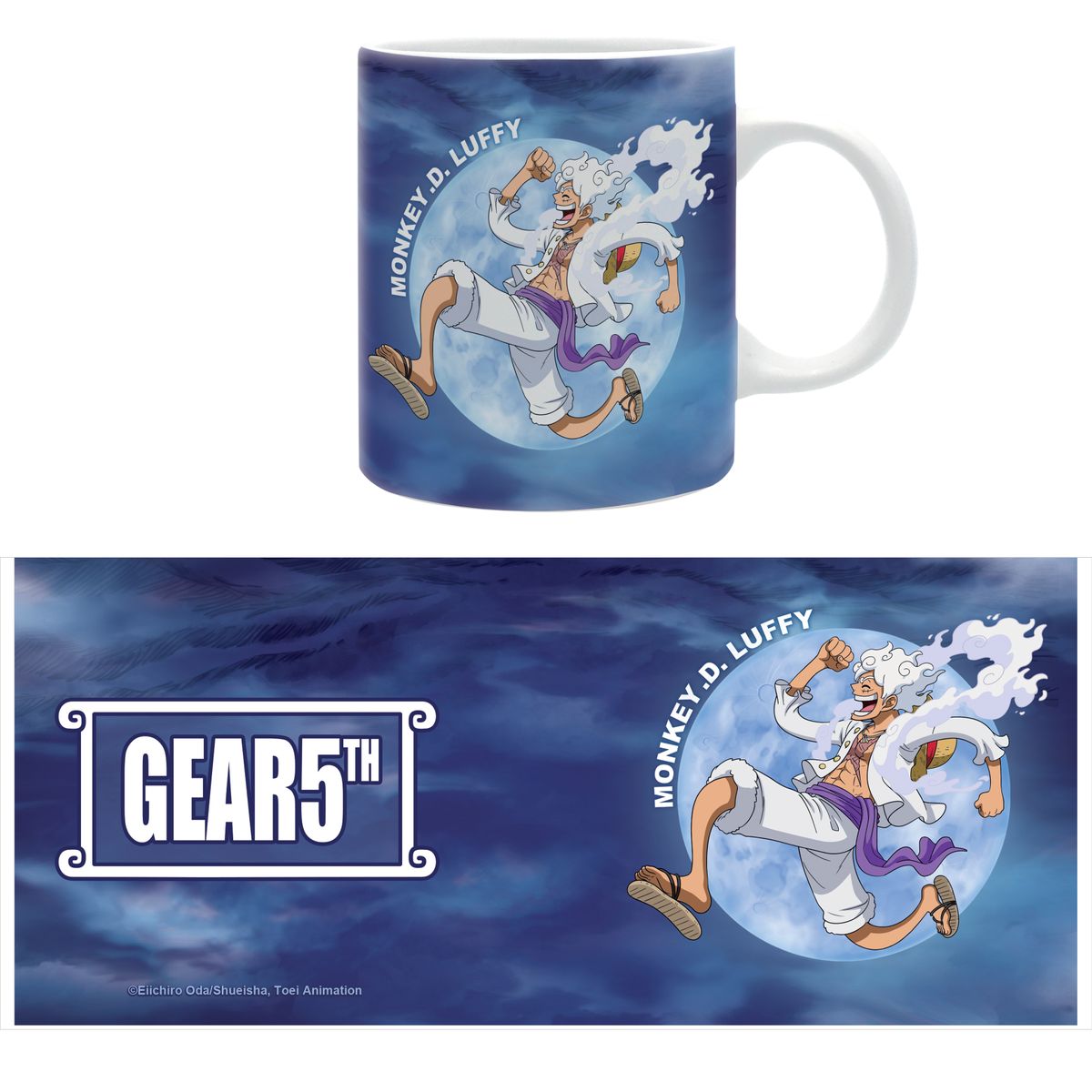 Die Tasse zeigt Ruffy in seiner Gear 5 Form.