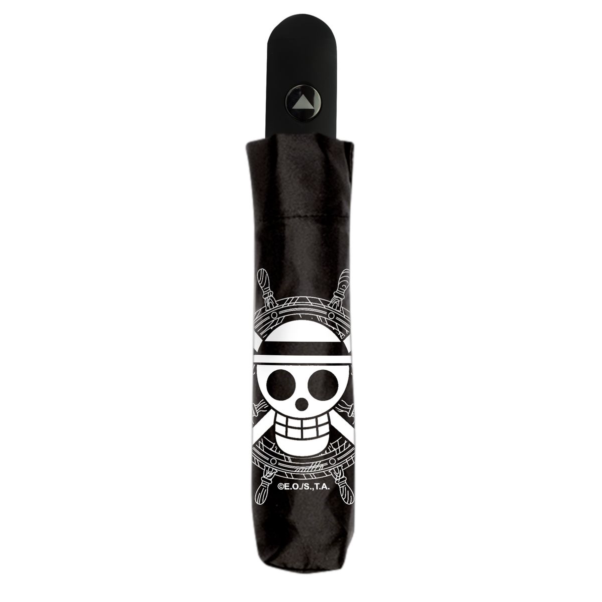 Der Regenschirm zeigt den Strohhut-Schädel und die Augen der Crew-Mitglieder.