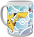 Die Tasse zeigt Ash und sein Pokémon Pikachu., welches sich gerade zum Kampf bereit macht.