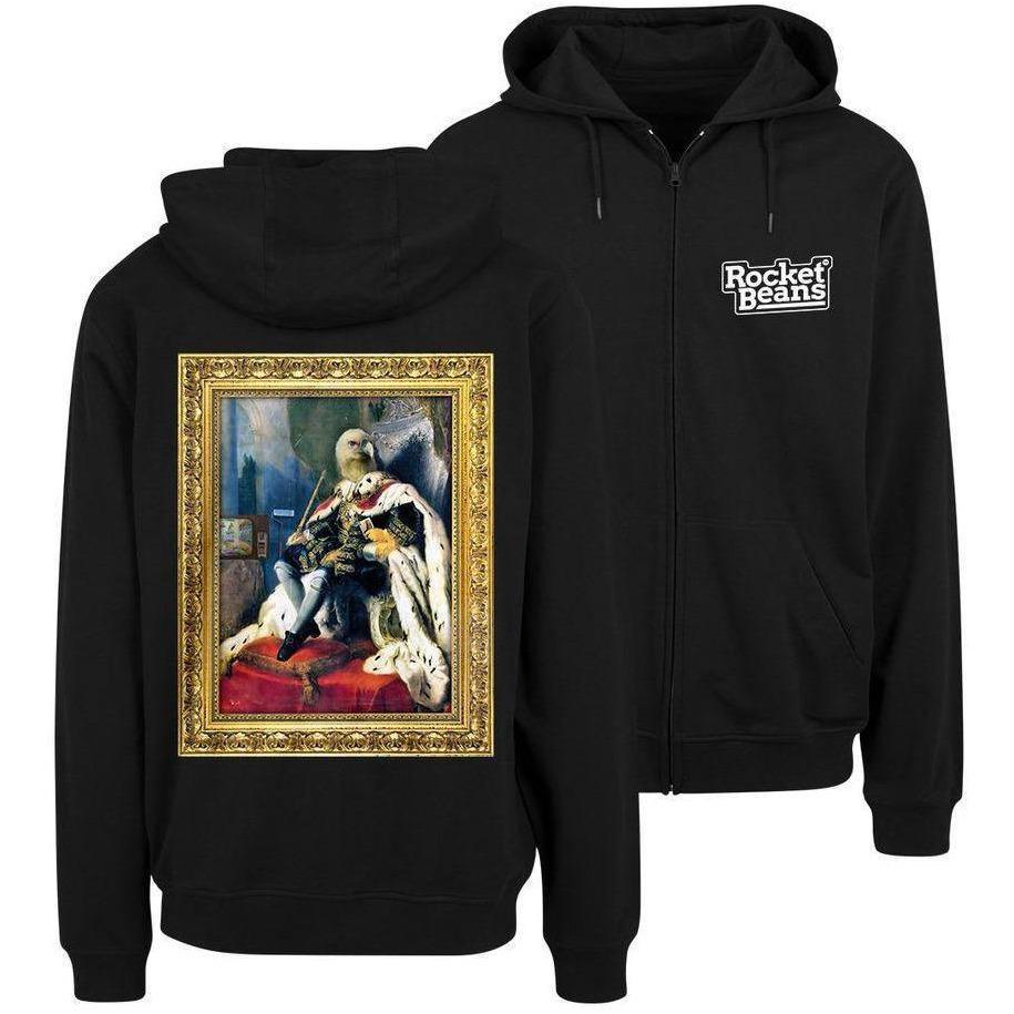 Der Zipper zeigt vorne Rocket Beans und hinten den Geierkönig.