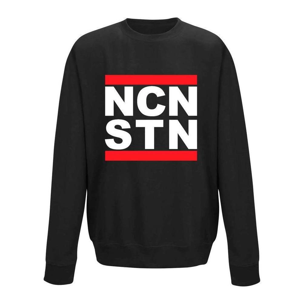 Das Sweatshirt zeigt die Buchstaben NCNSTN - Abkürzung für Nicenstein.