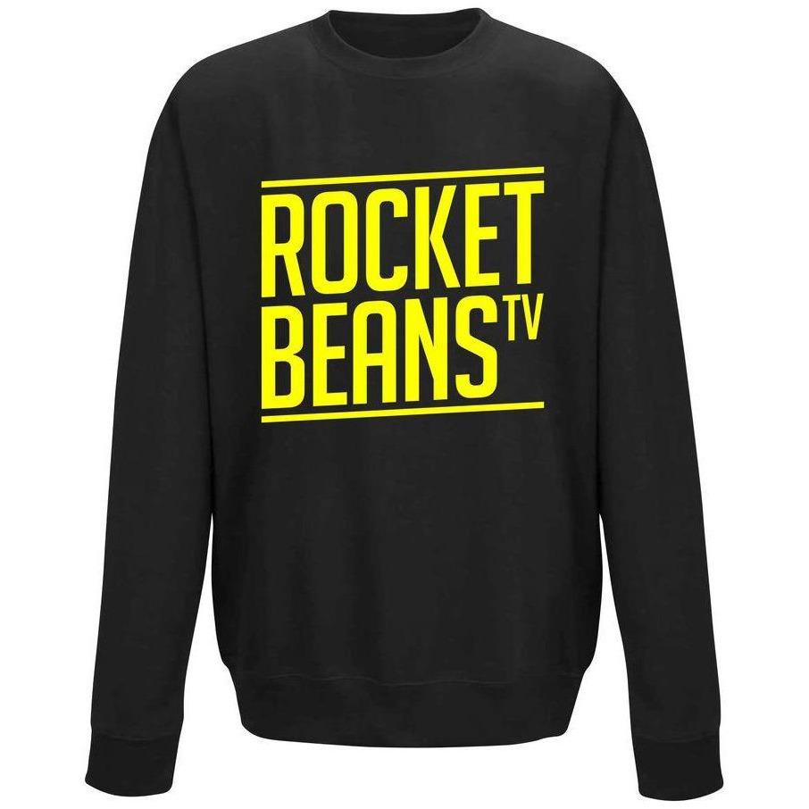 Das Sweatshirt zeigt Rocket Beans TV in gelb.
