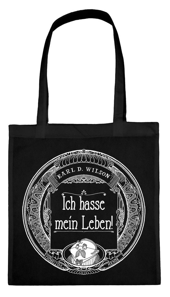 Der schwarze Beutel zeigt den Pen&Paper Charakter Earl D. Wilson und den Spruch Ich hasse mein Leben.