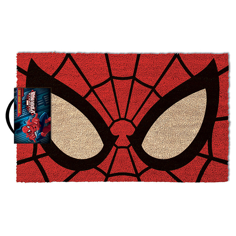 Die Fußmatte zeigt die Augen von Spider-Man.