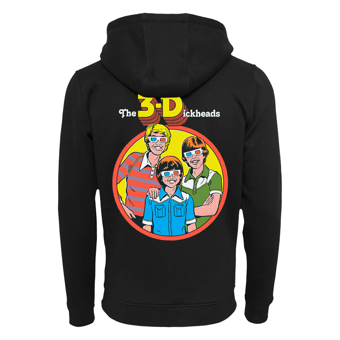Der Hoodie zeigt drei Jungs mit 3D-Brillen. Über ihnen steht "The 3-Dickheads".