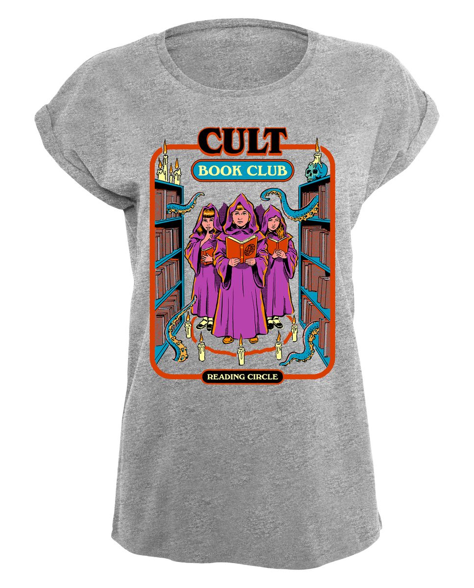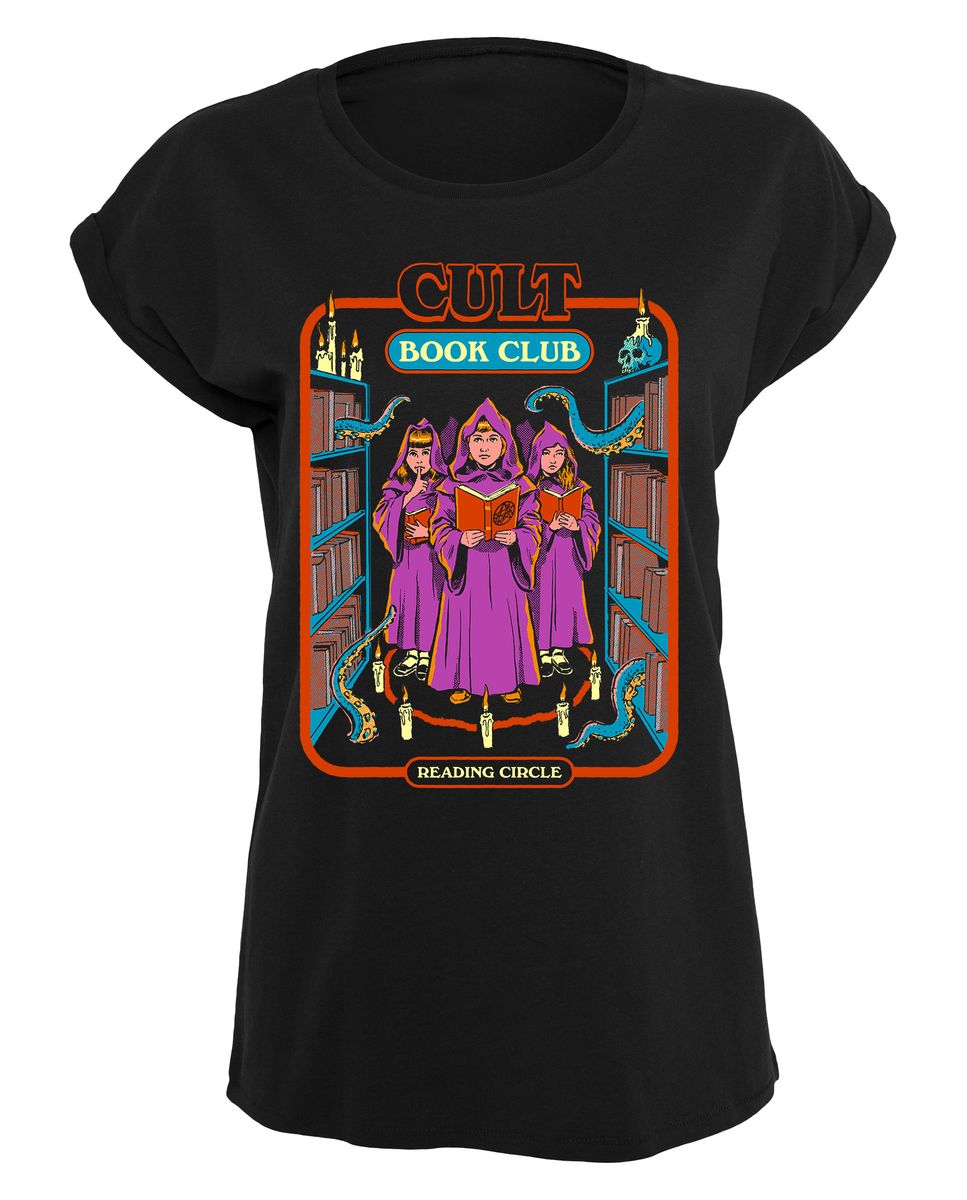 Das T-Shirt zeigt drei Mädchen, die in einer Bücherei stehen. Aus den Regalen kommen Tentakel.