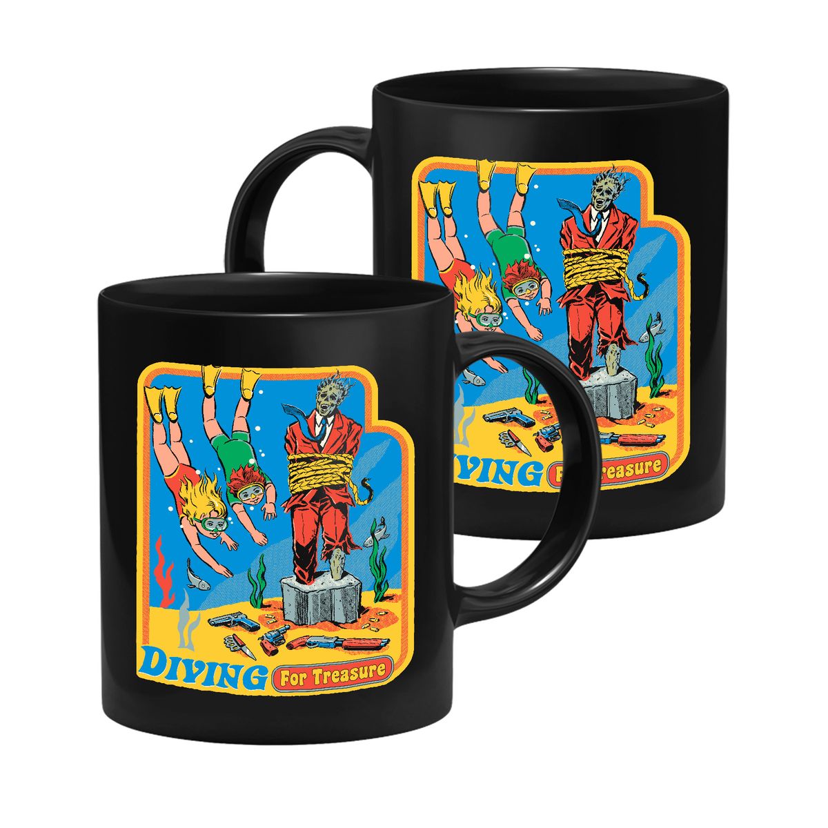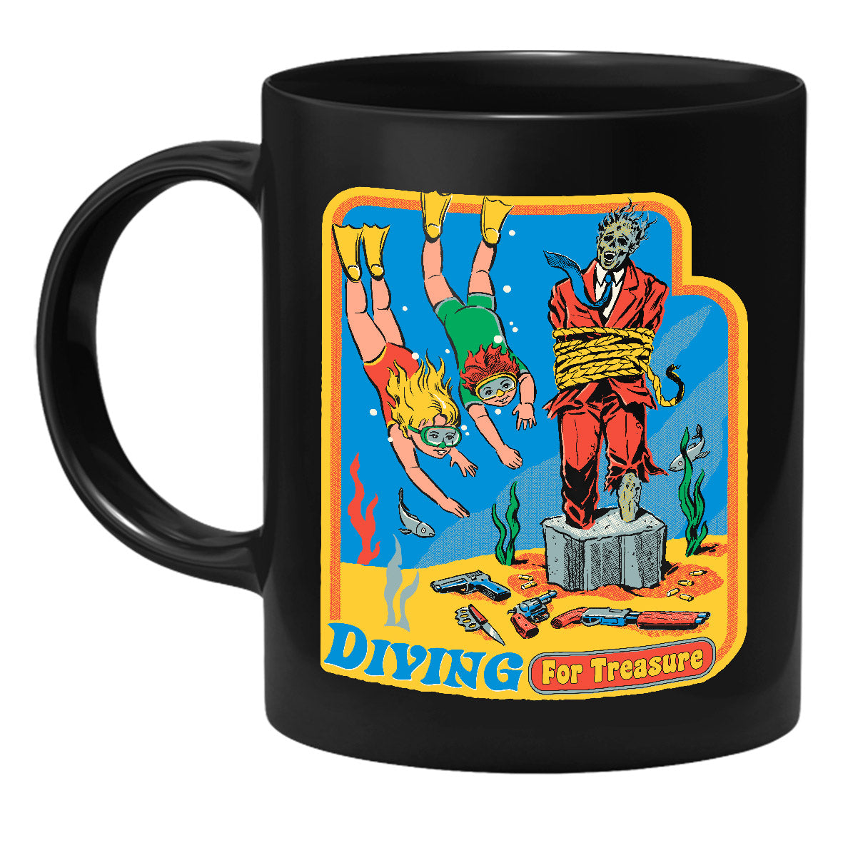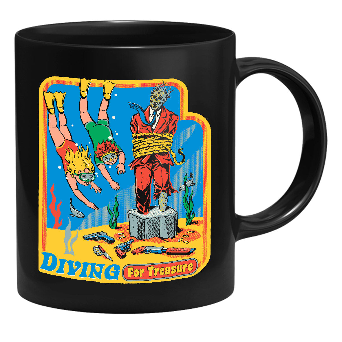 Die Tasse zeigt zwei Kinder, die nach einem versunkenem Mafiosi tauchen.