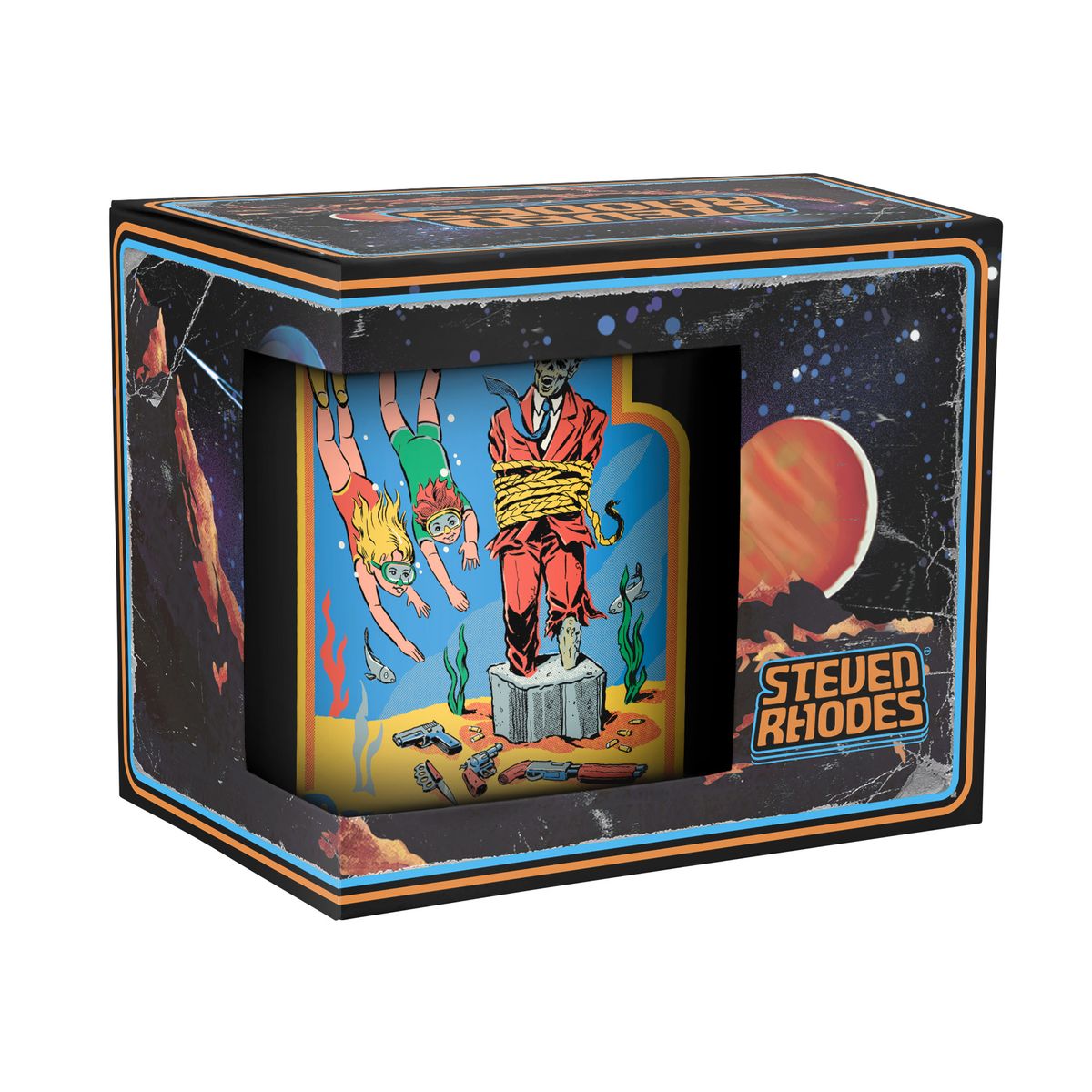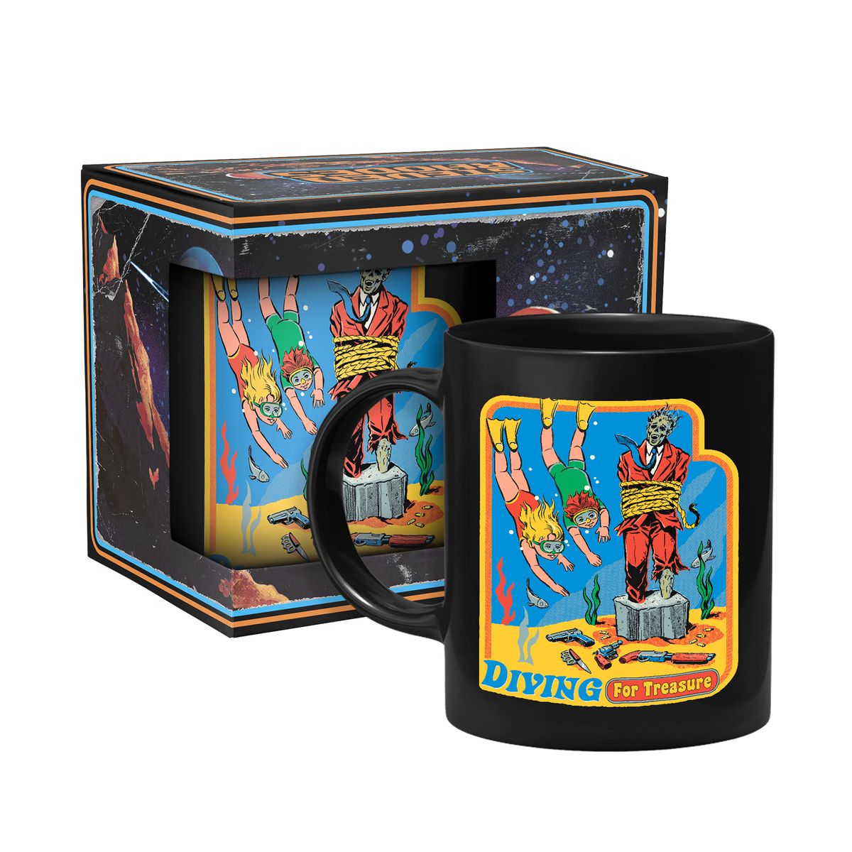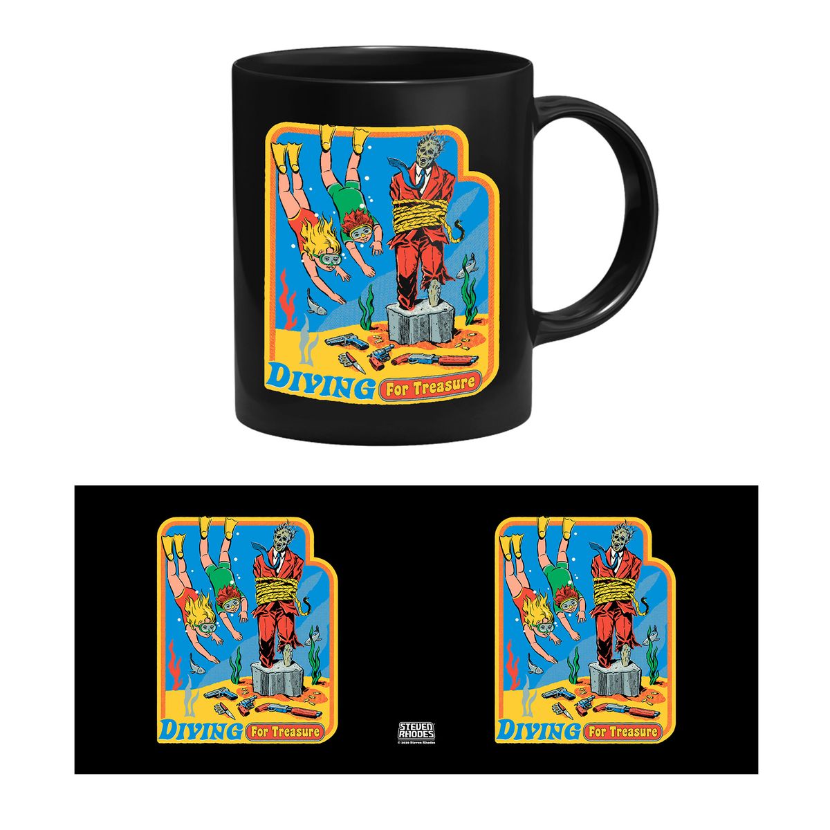 Die Tasse zeigt zwei Kinder, die nach einem versunkenem Mafiosi tauchen.