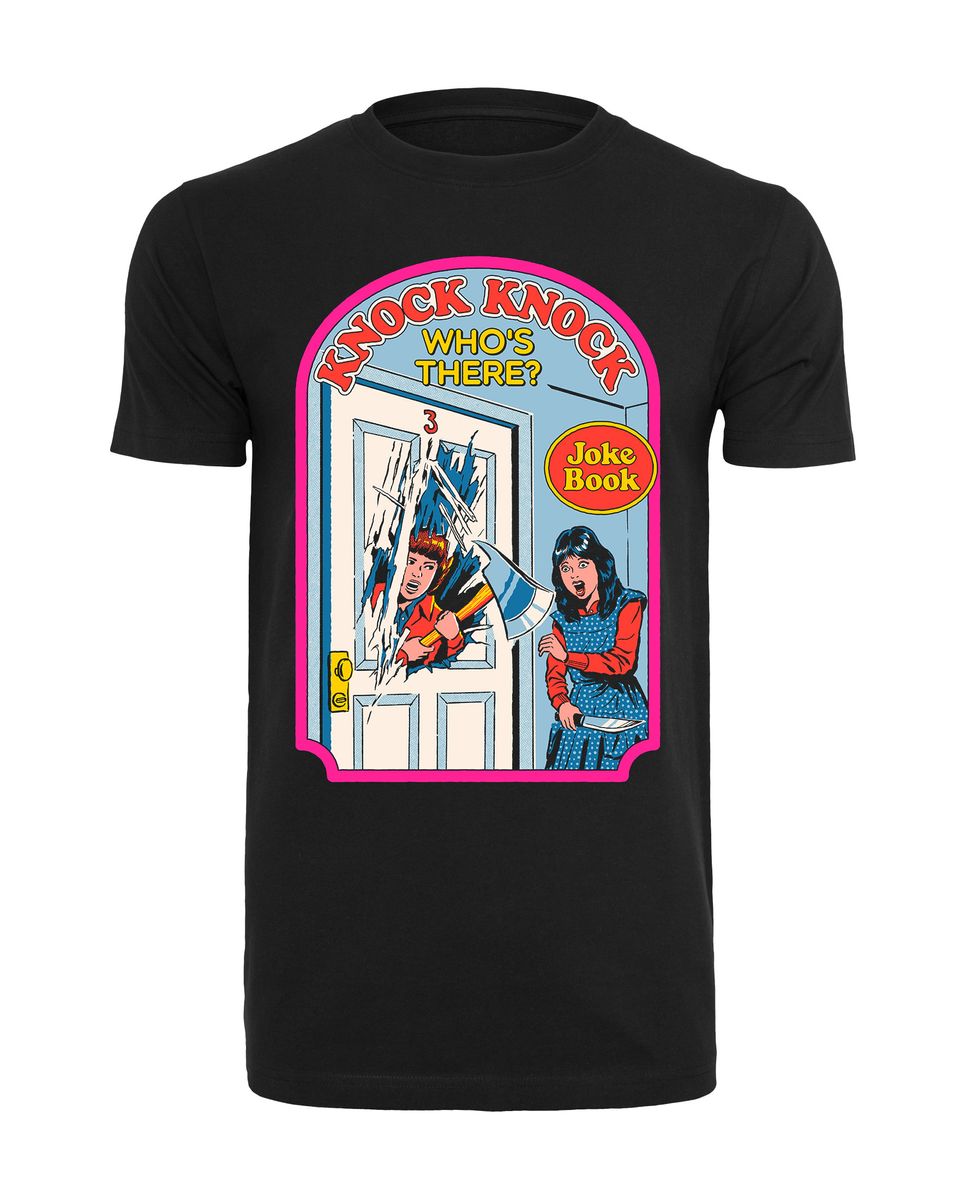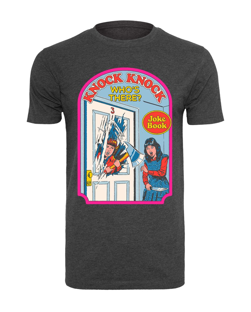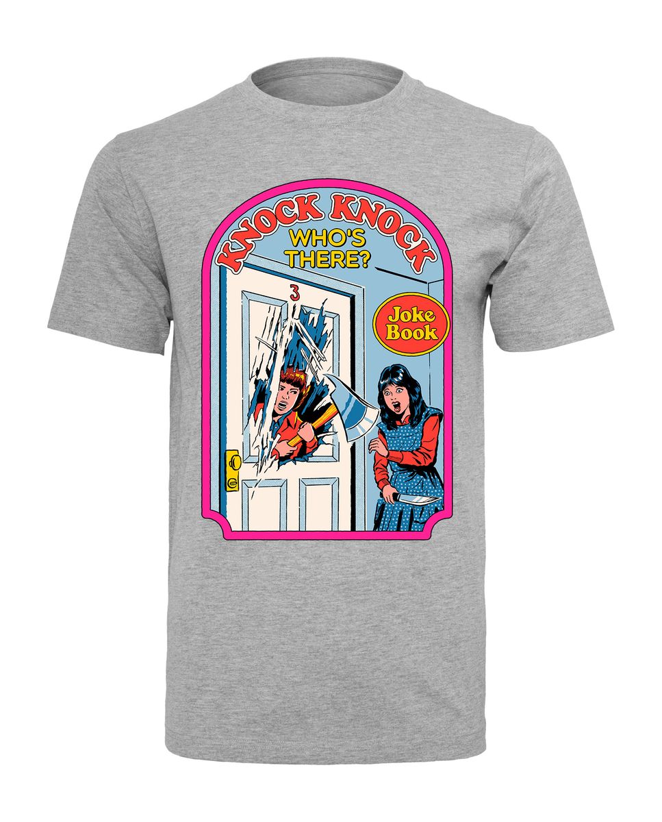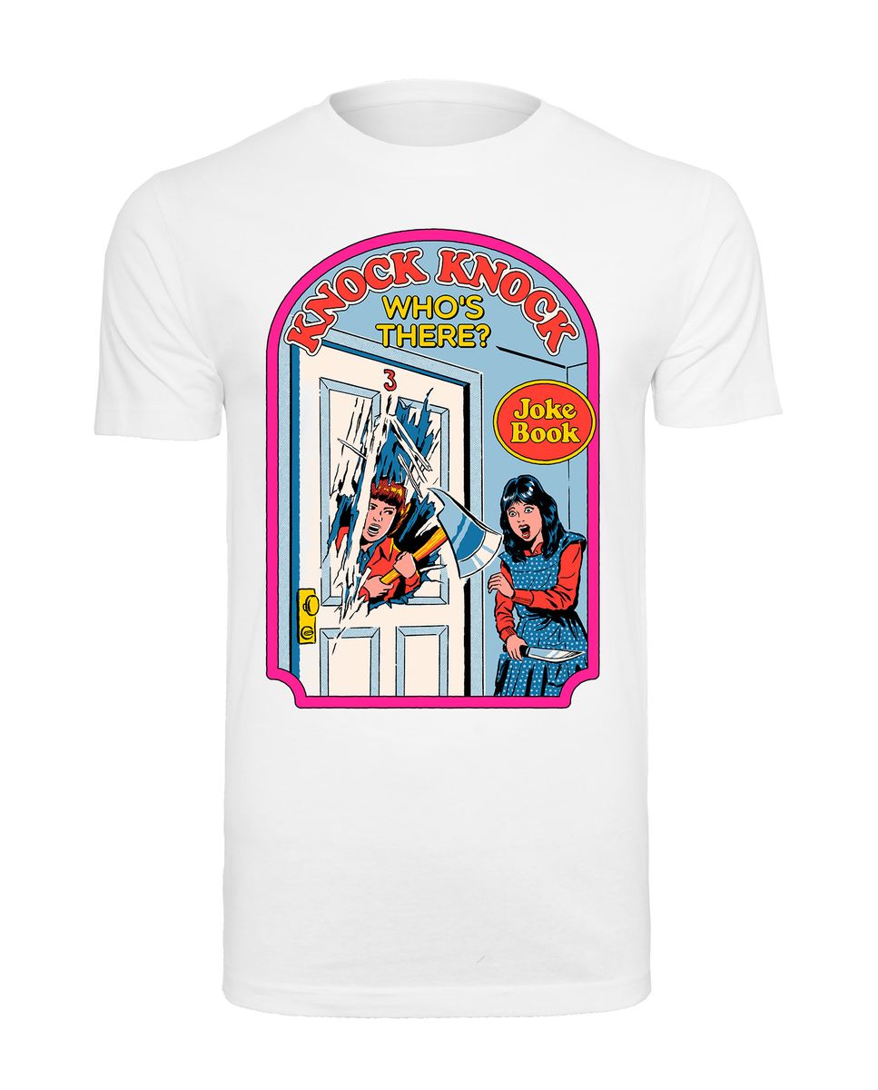 Das T-Shirt zeigt einen Jungen, der mit einer Axt durch eine Tür bricht. Dahinter steht ein ängstliches Mädchen.