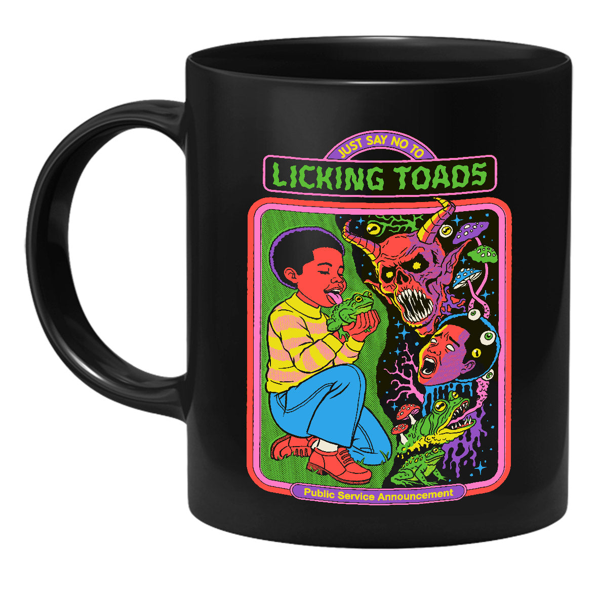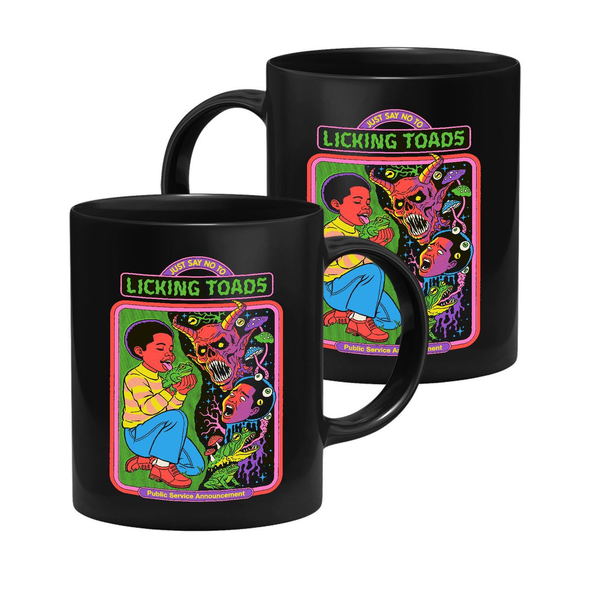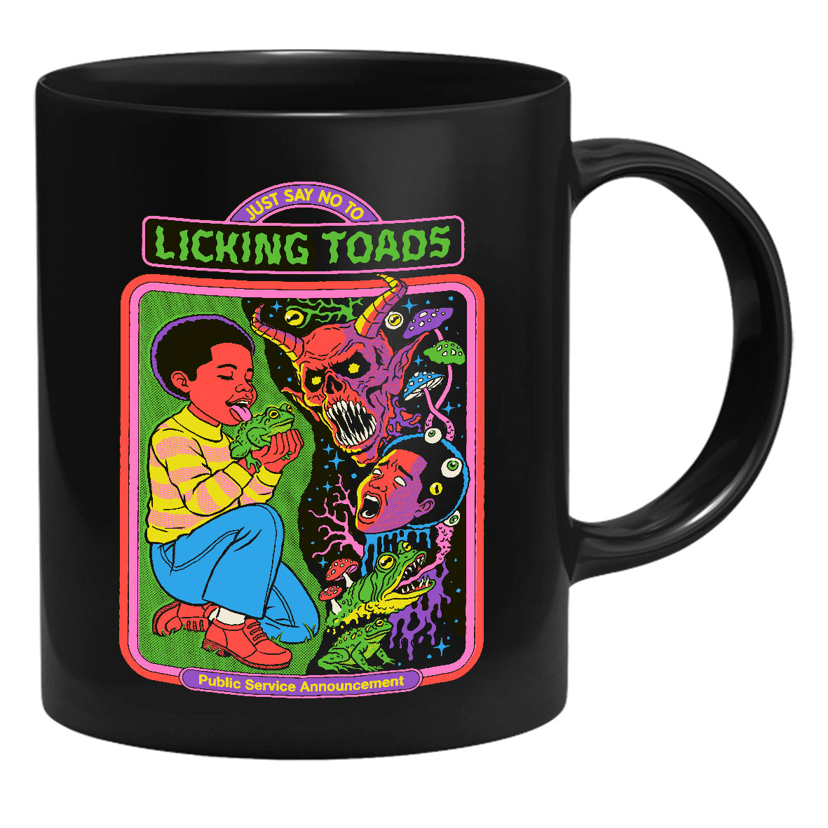 Die Tasse zeigt einen Jungen, der an einer Kröte leckt.