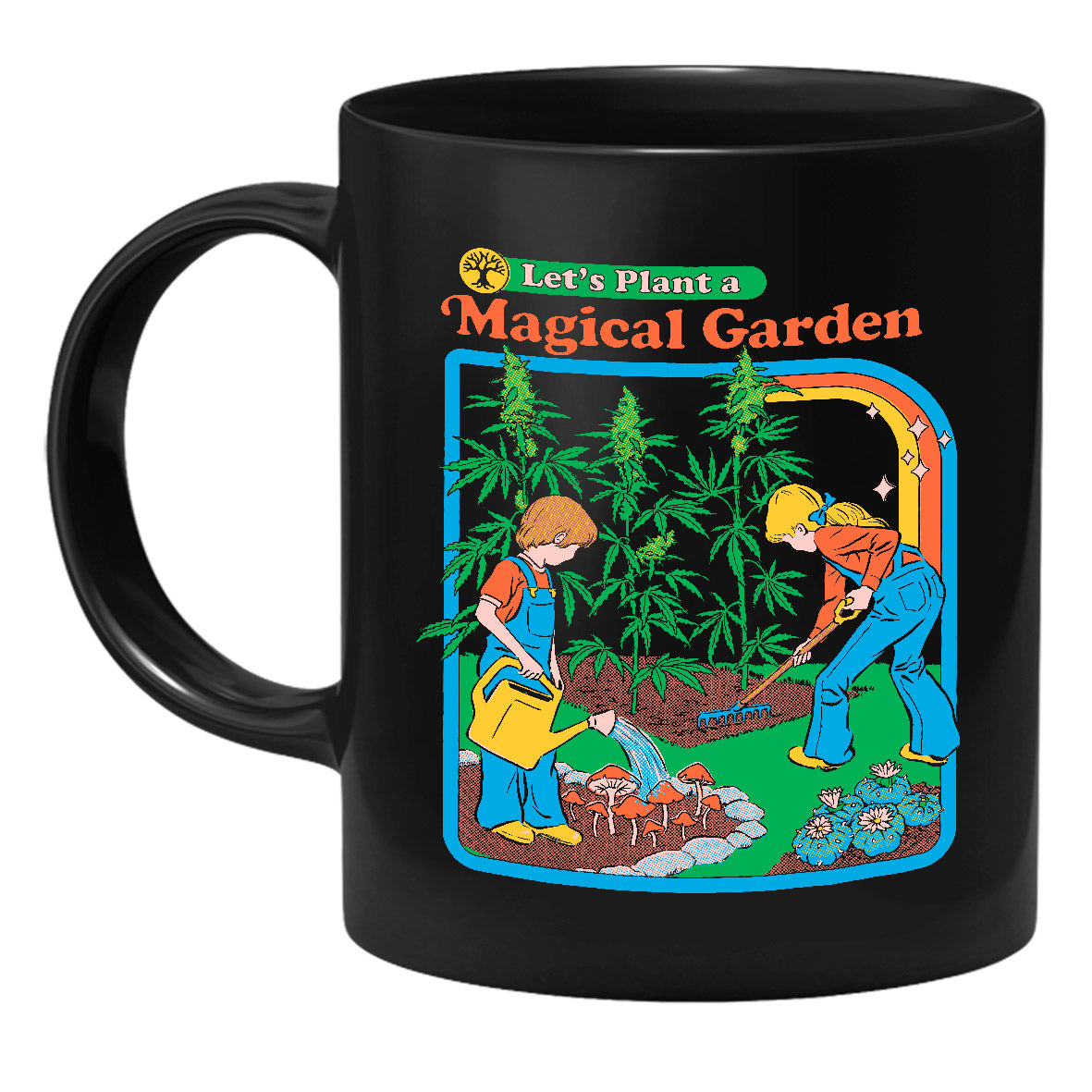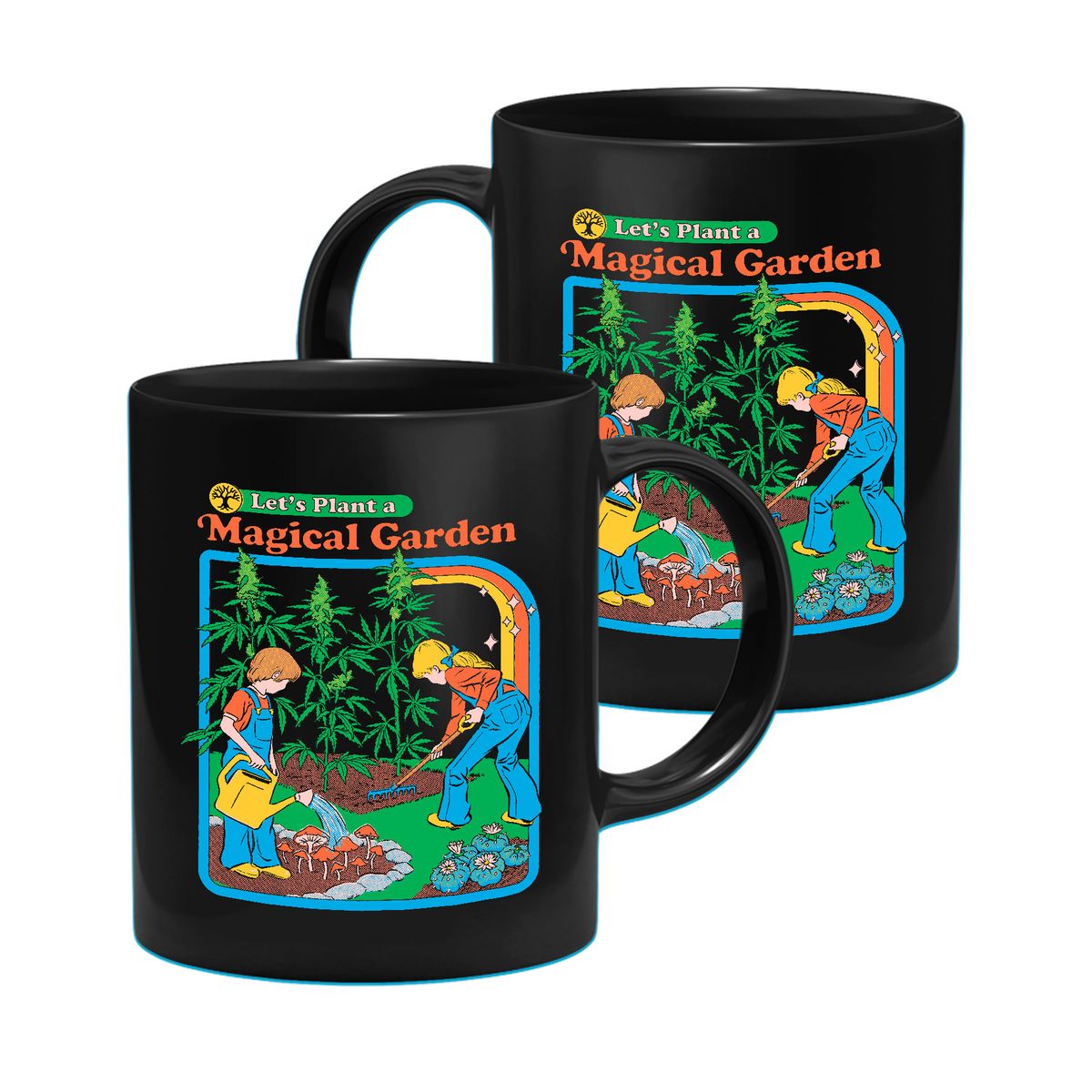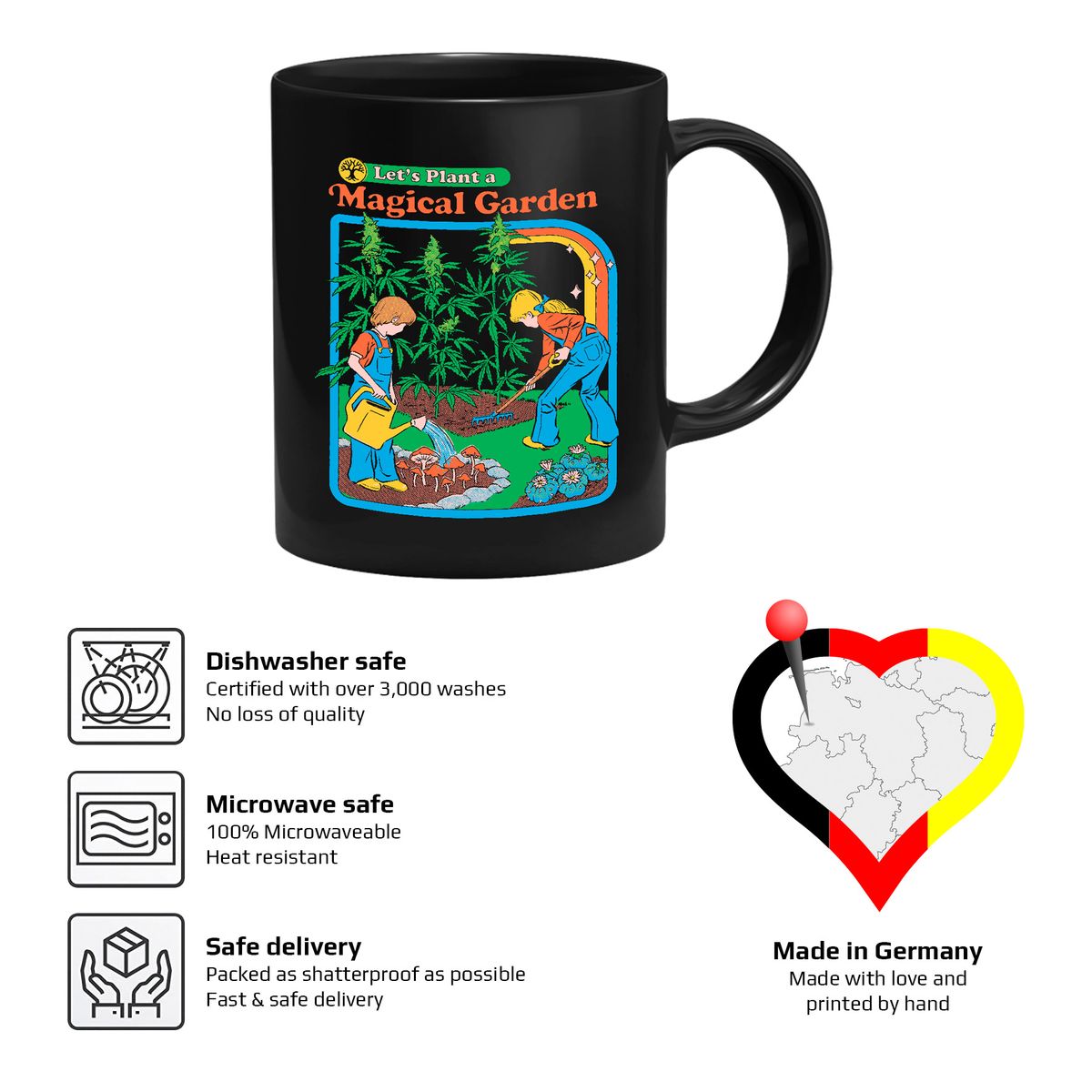 Die Tasse zeigt zwei Kinder, die sich einen "magischen Garten" anpflanzen.