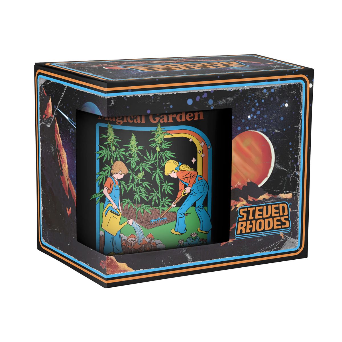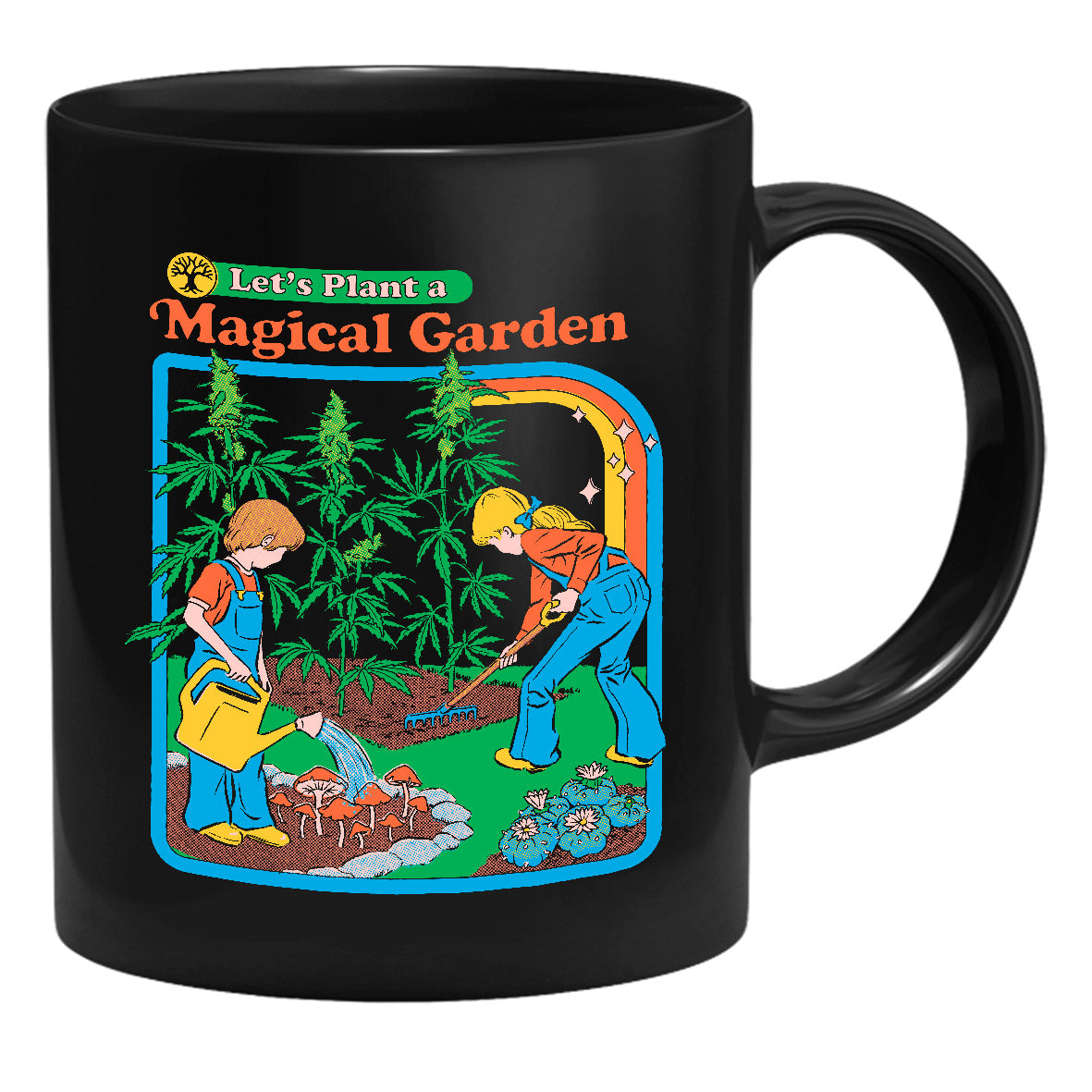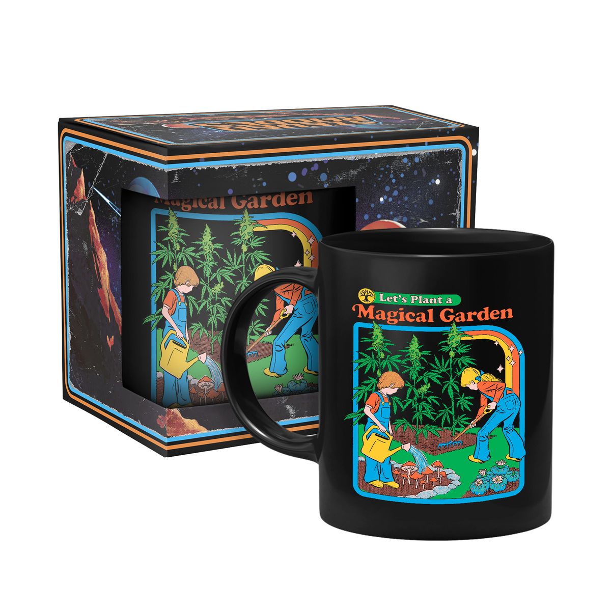 Die Tasse zeigt zwei Kinder, die sich einen "magischen Garten" anpflanzen.