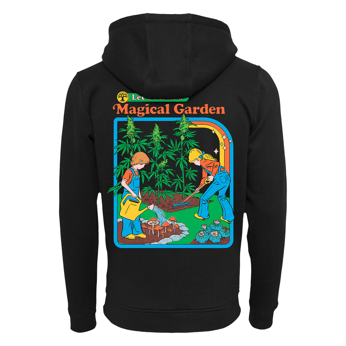 Der Hoodie zeigt zwei Kinder, die sich einen "magischen Garten" anpflanzen.