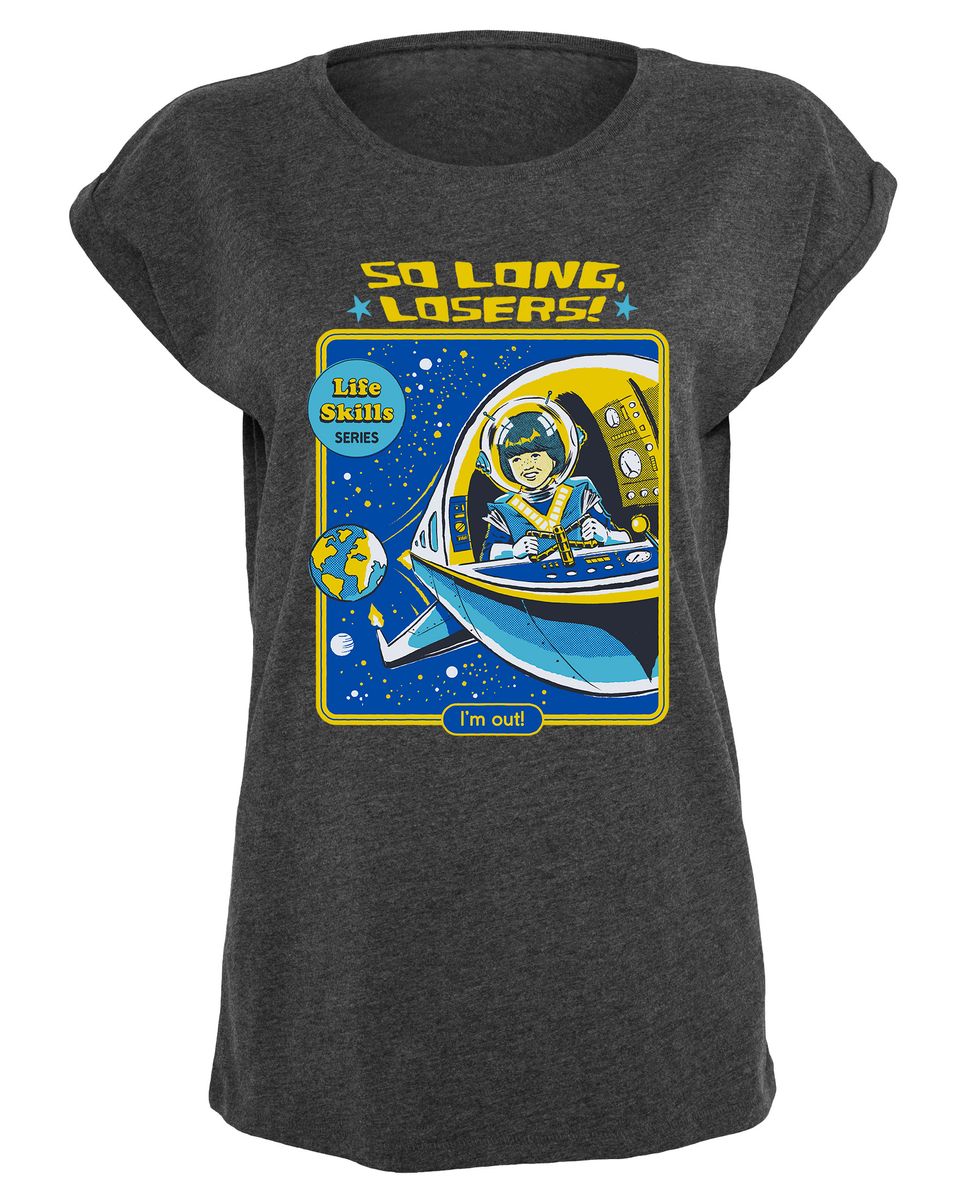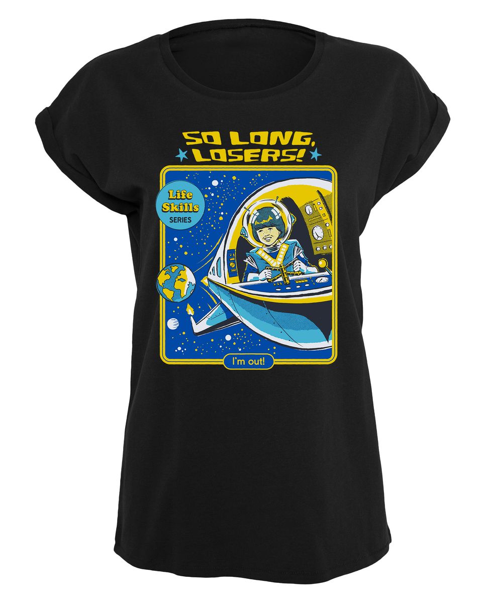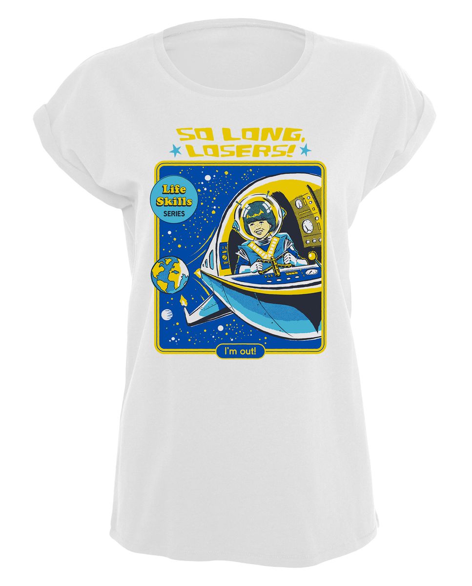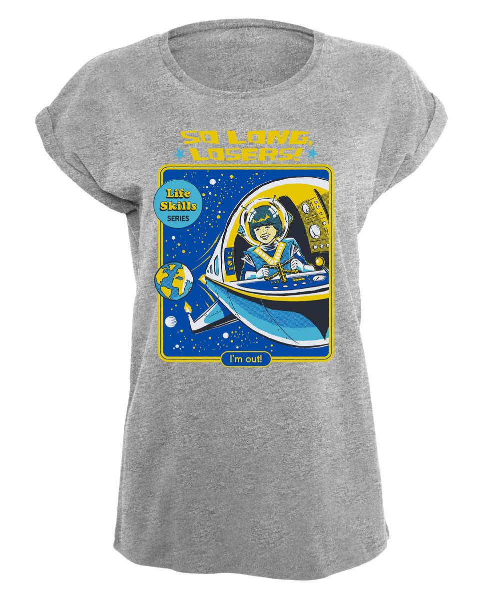 Das T-Shirt zeigt einen Jungen, der mit einem UFO die Erde verlässt.
