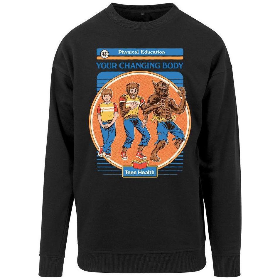 Der Sweater zeigt einen Jungen, der sich in einen Werwolf verwandelt. Darüber steht der Satz "Your Changing Body".