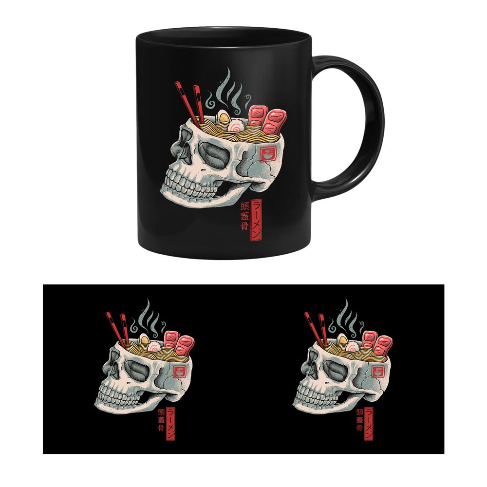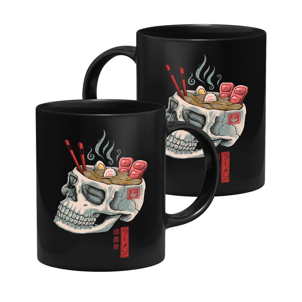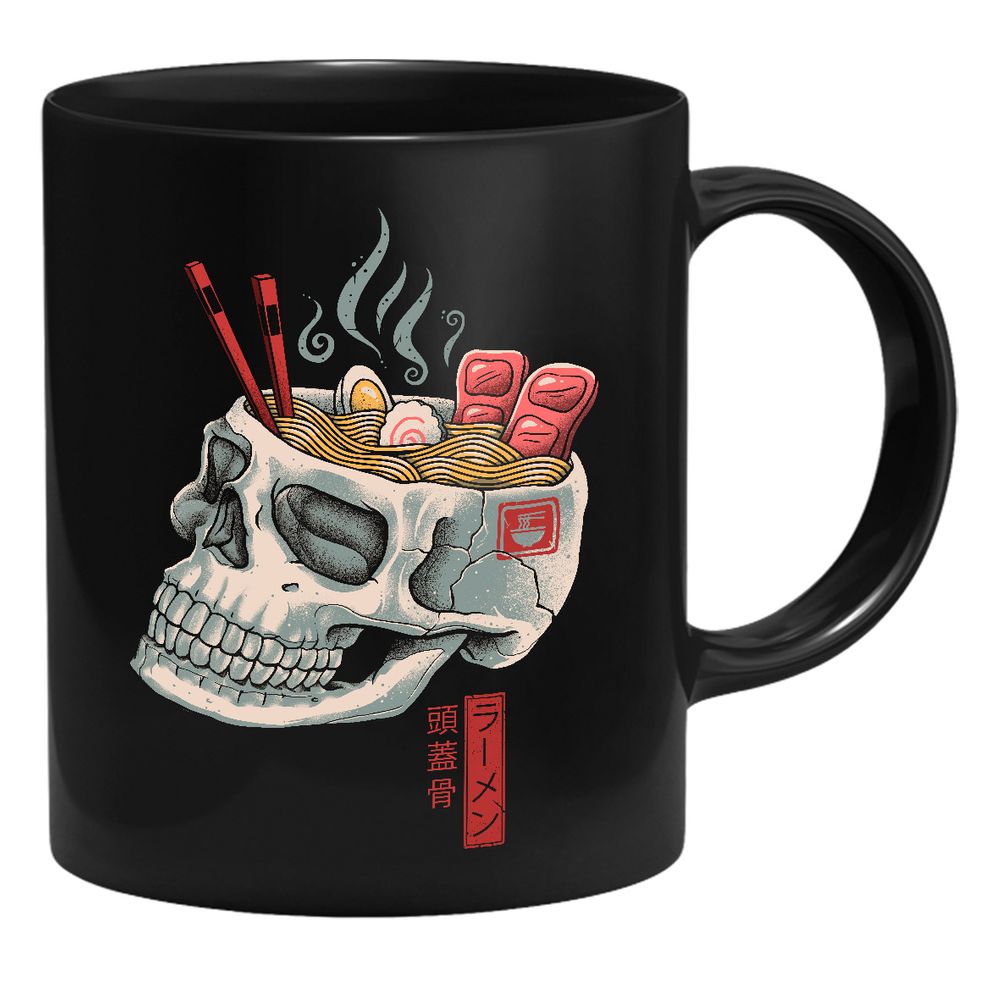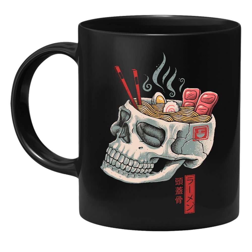 Die Tasse zeigt einen Totenschädel, der als Schüssel für Ramen fungiert.